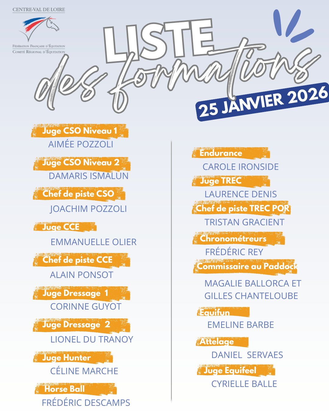 D’autre part, les Officiels de Compétition sont les Juges, Arbitres, Chefs de pistes et Commissaires aux paddocks qui officient sur les concours organisés par le biais de la FFE quelle que soit la discipline et qui sont référencés sur des listes informatiques tenues à jour par la FFE.